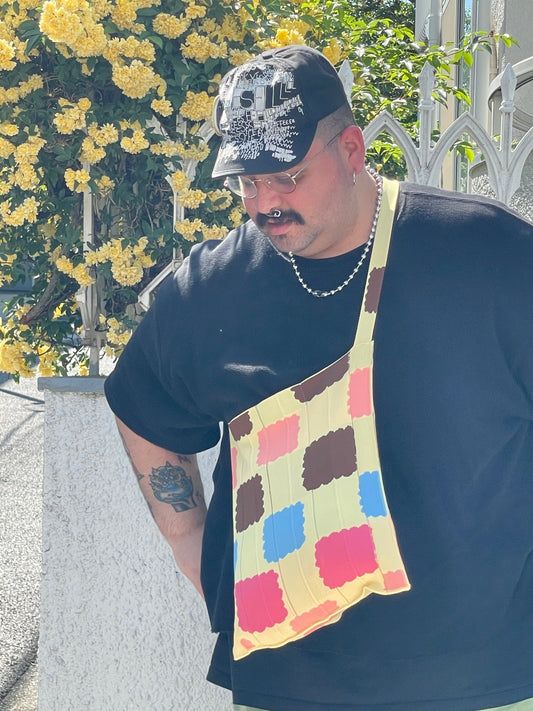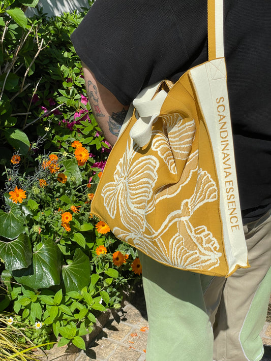ホールガーメントという生地の無駄が出ない方法で製造されるニットバッグです。